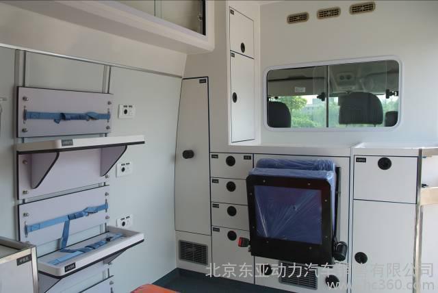 福星**外观、医用地板、主看护座椅、次看护座椅(可旋转)、洗手池系统、车内扶手、中门电动踏板、消毒灯、前后隔离。