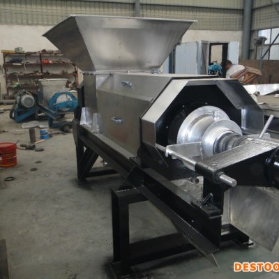 待处理的物料经过泵等工具均匀地输送到螺旋压榨机进料口,经过螺旋叶片挤压和筛网的过滤,水或者汁液经过筛网流到机器下面的接水盘收集后经过管路接走。分离出的固体从后端排出。不同的物料选用不同的筛网(孔径0.1-1mm)、不同的螺旋转速以及适当调整出渣口干湿调节装置来达到**的产量以及渣的干湿程度(或者说通过调整出渣口干湿调节装置以及适当螺旋转速来达到脱水效果和产量的**配合)------含纤维越高,产量越大,脱水后的渣干度也越高;筛网孔径越小,处理的物料的颗粒直径也越小。