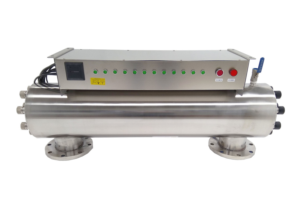 紫外线消毒器装置,采用**的紫外线杀菌灯,简体内壁经过特殊处理的食品级304不锈钢,使经过预处理的水流过筒体时受到波长253.7nm紫外线足够量的照射,具有良好的杀菌效果