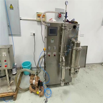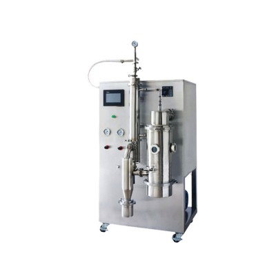 5、小样品量: 500mL(视物料固形物含量差异); 6、实时调控PID恒温控制技术,加 7、喷嘴口径: 0.5mm 、0.7mm、 1mm 、1.5mm 、2mm 可选,并可根据客户要求定制; 8、整机功率:6KW/380V; 9、在低温(50~80℃)条件下完成瞬间喷雾干燥,在这种干燥条件下,易氧化、易挥发、热敏物质都能很好保持化学结构及生物活性; 10、真空度-0.05~0.06MPA;