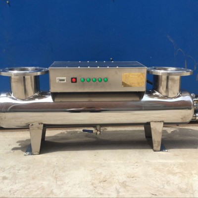 该紫外线消毒器(紫外线杀菌器)采用控制器与水处理器一体化设计(如需要可以特殊设计成分体式),控制器由紫外灯工作指示电路、可编程时间控制器、时间累加控制器及电子镇流器构成;水处理器部分由封闭压力式筒体、进出水管、自动清洁式石英套管、紫外光灯管及灯管左右散热罩组成。