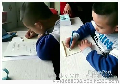 林文正姿护眼笔, 是专为孩子"防近视、防驼背、写好字"而设计!是集光学,电子学,机械学为一体的高科技智能新产品,是一支有眼睛,有大脑的神笔。内置先进的红外感应器和高科技智能芯片和规范的书写握笔槽,科学的规范孩子握笔姿势,书写过程中,孩子坐姿不正,双眼过于靠近桌面,内置电子眼会自动将信息传给中央处理器,通过高科技360度全角电子眼监控技术,使电子带动机械联动,笔尖**会自动缩回,迫使学生无法写字;强制纠正学生在书写过程中的错误坐姿,让学生挺直身姿书写;当孩子调整好(端正坐姿),笔尖又会自动伸出。恢复正常书写功能。科学的纠正了学生错误的握笔书写姿势,在无家长和老师的管制情况下能自觉养成正确的书写好习惯,预防近视眼和驼背的发生。让孩子养成受用一生的好习惯!