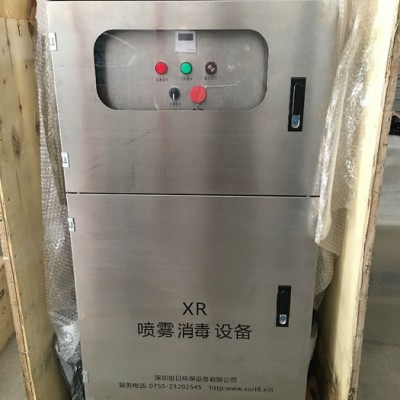喷雾消毒杀菌设备:它的工作原理是利用高压泵将经过水处理系统净化过的再加入消毒液的水加压至30公斤以上,经过高压管路传送至高压喷咀雾化,旭日喷雾设备的雾滴的直径仅为1-15μm,这些微小的雾化颗粒能长时间漂浮在空气中,漂浮在空间,这些微雾因加入了消毒液,所以具有消毒液性,能在每个空隙中蔓延,从而达到无死角全面消毒,猪养殖场消毒杀菌系统杀虫喷雾机,
