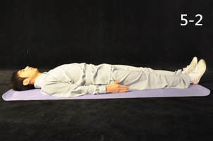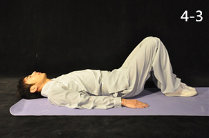 动作4:伸膝呈仰卧位,双手置于体侧,手心向下(图4-4)。