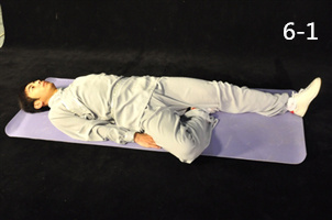 动作1:右膝屈曲,右足踝压于左膝关节正下方,左膝关节伸直(图6-1)。