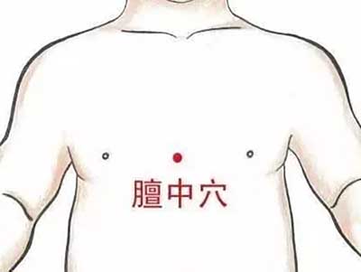 缓解心悸,可常按膻中穴。先用四指指腹自上而下直推胸骨,约10~20次,手法宜轻柔和缓,再用手掌顺时针轻摩心前区3分钟,约左乳头内下方2厘米处,然后用拇指点按膻中穴1分钟,最后用手掌轻拍心前区所对应的后背部2~3分钟即可。