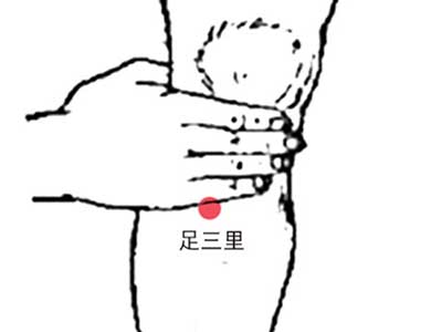 当突然出现胃部痉挛性疼痛时,可以用双手拇指揉按患者的双腿足三里穴(位于外膝眼下3寸,胫骨外侧一横指处),待有酸麻胀感后持续3~5分钟,可以改善胃肠功能,使胃痛明显减轻或消失。