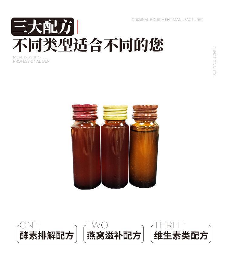 生产、加工/OEM、销售:代餐(小胖瓶营养代餐、五谷代餐袋装、条装)胶原蛋白(果冻条、玻璃瓶胶原饮、异型袋胶原饮)、枸杞原料(异型袋、条形)酵素果冻(条形、杯状)、酵素果粉(条型、小胖瓶)、即食燕窝(金碗装、玻璃瓶、冻干即食燕窝)、即食花胶(金碗装、玻璃瓶装)、冻干产品(即食燕窝、即食银耳燕窝枸杞红枣)等各种大健康食品、饮料、固体饮料、果冻、食疗性固体饮料/燕窝/咖啡