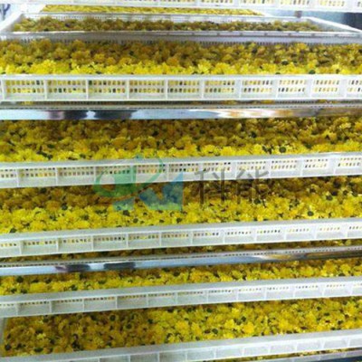 菊花为菊科多年生草本植物,通常为其干燥的头状花序入药。新鲜菊花含水量较高,其中花瓣部分含水量较少,组织较嫩,容易干燥,而花头部分含水量特大,可达80%以上,且组织较老,不易失水,亦即菊花花头是一种组织不均匀的药材。干菊花大多用于泡茶饮用,具有排味浓香甜、去腻消食、醒脑益神之功能。因此对菊花的色、香、形、味要求很高,要求干燥后原色、原味、原样,这**要求熟化后烘干,对花头部分进行强干燥,而对花瓣部分进行弱干燥。而且前先蒸熟后晒干的传统干燥工艺不但完全是靠天吃饭,而且造成花瓣部分过分干燥、瓣片脱落,干燥后的菊花质量达不到要求。