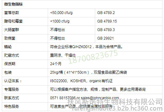 微生物 | 细菌总数<1000cfu/g, 霉菌总数<25cfu/g ,大肠杆菌<10cfu/g ,致病菌不得检测 (可以生产非辐照产品,在购买时请提醒) | GB | ||||