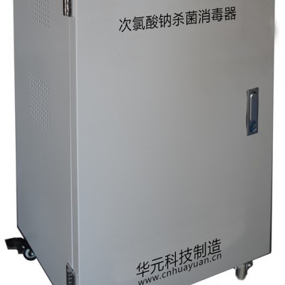 请认准华元牌HZ系列次氯酸钠杀菌消毒器,也称为次氯酸钠自助箱。次氯酸钠消毒液产量分别为25L/h,50L/h,100L/h等规格,若选较大型号,其价格相应增加。