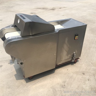 多功能型切菜机包含单切机的所有功能的同时,也可切圆形如土豆、萝卜等。 可将根、茎、叶等蔬菜加工成片、丝、丁、菱、曲线、花丁、花片等。切片装置用于硬菜(萝卜、土豆、水果、薯类)的切片,厚度在1-10毫米内自由调整;往复竖刀将刀成的菜片或软菜(韭菜、芹菜)切成直丝或段、曲线丝、方丁(或形刀)输送带每次移动距离1-20毫米自由调整。所调整量即为丝段的宽度;应注意被切菜直径较粗时(大于30毫米)出片效果才好,便于切丁,直径小时制的片或丁将会杂乱。被切菜加工面平整光滑、规则,组织完好,保持手工切制的效果。