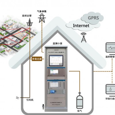 CMS-6000型环境空气中非甲烷总烃监测VOCs在线监测系统分析厂界/厂区中非甲烷总烃、苯系物含量,结合气象参数在监测系统的上位机形成报表,通过数采仪以标准HJ 212协议上传至环保平台,满足环保监管部门监控要求。同时数据可传送至园区或厂区DCS系统,便于中控室监控厂区各监测点实时浓度;集安全性设计、自动化监测、智能化监管、快速及时报警于一体。
