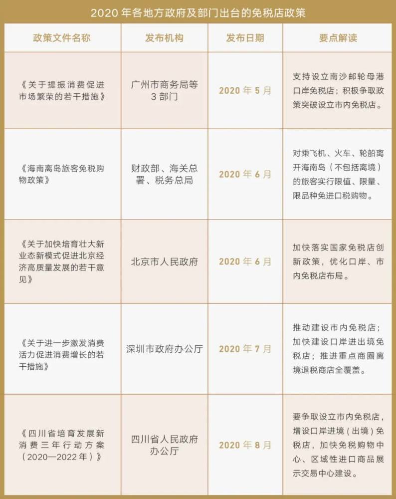 随后各地方政府及相关部门也出台了相应的免税店政策。据中国美妆网不完全统计,至少有广州、海南、北京、深圳、四川这5地于2020年出台了扶持免税店的相关政策文件。